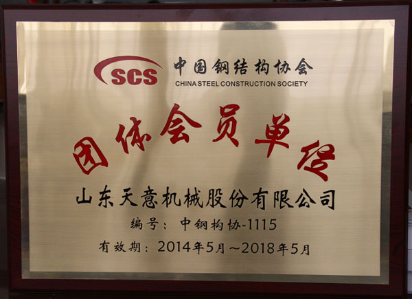 熱烈祝賀天意機械成功加入中國鋼結(jié)構(gòu)協(xié)會