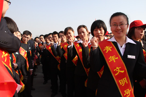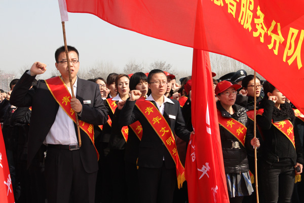 區(qū)領(lǐng)導(dǎo)王驍、初建偉、范國瑞、李勇、朱前春以及各團(tuán)組織負(fù)責(zé)人,青年文明號、青年志愿服務(wù)隊和省運會青年志愿者代表1000多人參加了此次活動。