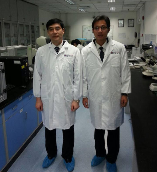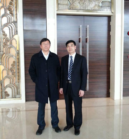 經(jīng)典集團董事長苗樹文(右一)與劉道志博士(左一)合影