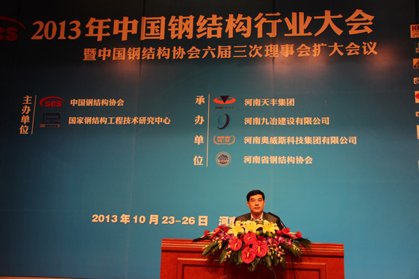 10月23日-26日,“2013年中國鋼結(jié)構(gòu)行業(yè)大會暨中國鋼結(jié)構(gòu)協(xié)會六屆三次理事會擴大會議”在河南鄭州黃河迎賓館召開。會議由中國鋼結(jié)構(gòu)協(xié)會、國家鋼結(jié)構(gòu)工程技術(shù)研究中心主辦;河南鋼結(jié)構(gòu)協(xié)會等單位承辦。會議邀請了國務(wù)院國資委行業(yè)協(xié)會聯(lián)系辦公室副主任張濤、河南省人大常務(wù)委員會副主任儲亞平、中國鋼鐵工業(yè)協(xié)會常務(wù)副會長朱繼民、中國鋼結(jié)構(gòu)協(xié)會會長(中冶建筑研究總院院長)岳清瑞、常務(wù)副會長劉毅、副會長賀明玄、秘書長劉萬忠及副會長、常務(wù)理事單位等出席會議。經(jīng)典集團董事長苗樹文、生產(chǎn)總經(jīng)理王忠策等公司領(lǐng)導參加了此次大會,經(jīng)典集團榮獲中國鋼結(jié)構(gòu)協(xié)會第六屆理事會理事單位,苗樹文董事長為中國鋼結(jié)構(gòu)協(xié)會第六屆理事會理事。
