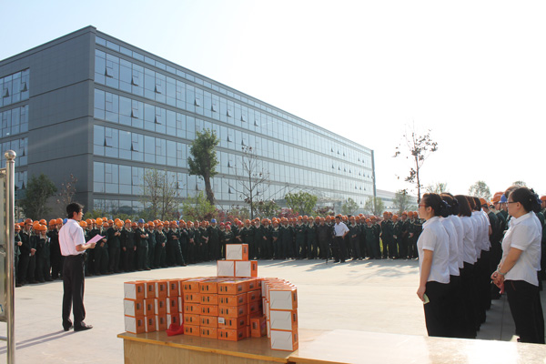 集團(tuán)公司領(lǐng)導(dǎo)為員工現(xiàn)場(chǎng)頒發(fā)“母愛(ài)手機(jī)”