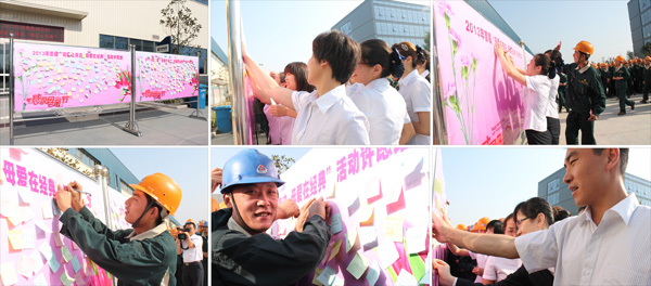 全體員工在許愿墻上貼下“最想對(duì)母親說(shuō)的話,最想幫母親實(shí)現(xiàn)的愿望”