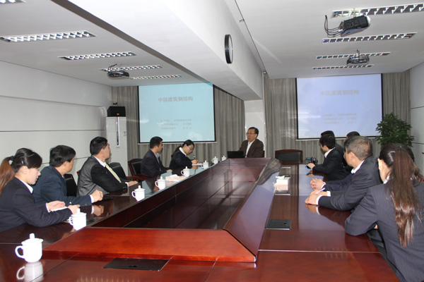 寶鋼集團(tuán)賀總在會議室講解中國鋼結(jié)構(gòu)行業(yè)相關(guān)專業(yè)知識