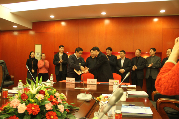 1月18日下午,我公司與同濟(jì)大學(xué)舉行長期戰(zhàn)略合作協(xié)議簽約暨授牌儀式在會議室隆重舉行。集團(tuán)公司苗樹文董事長與同濟(jì)大學(xué)土木工程學(xué)院李元齊教授簽署“關(guān)于經(jīng)典集團(tuán)與同濟(jì)大學(xué)合作意向協(xié)議書”,并向李教授頒發(fā)了聘書。出席此次會議的有市委常委宣傳部部長初建偉,開發(fā)區(qū)主任周廣全,發(fā)改局劉局長,經(jīng)信局韓局長,科技局周局長,國土資源局王局長等。會議由上海市科技成果轉(zhuǎn)化促進(jìn)會秘書長姚偉民主持。