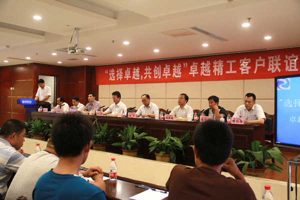 會(huì)議上,卓越精工總經(jīng)理劉海龍介紹了卓越精工一年來(lái)的發(fā)展歷程及基本情況,劉總在發(fā)言中談到,10個(gè)月300多天,卓越人保持了創(chuàng)業(yè)激情,沒日沒夜地干,經(jīng)歷了創(chuàng)業(yè)期的風(fēng)風(fēng)雨雨,承受了前所未有的壓力,戰(zhàn)勝了無(wú)數(shù)困難和挑戰(zhàn)才有了今天,我們忘不了政府領(lǐng)導(dǎo)在建廠時(shí)幫我們征地跑政策手續(xù)落實(shí)水電氣確保了工程進(jìn)度、忘不了中國(guó)有色金屬研究院的專家們給我們的技術(shù)支持幫我們克服了技術(shù)難關(guān),更忘不了我們前期在做市場(chǎng)推廣時(shí)遇到困難給予我們幫助和支持的你們特別是臨沂市場(chǎng)張學(xué)好總經(jīng)理做了我們公司的第一個(gè)代理經(jīng)銷商,正是你們大家給了我們卓越人信心和動(dòng)力!之后,劉海龍總經(jīng)理詳細(xì)介紹了公司經(jīng)營(yíng)理念、人才、設(shè)備、產(chǎn)品、市場(chǎng)等方面的情況,給與會(huì)嘉賓以極大的鼓舞。