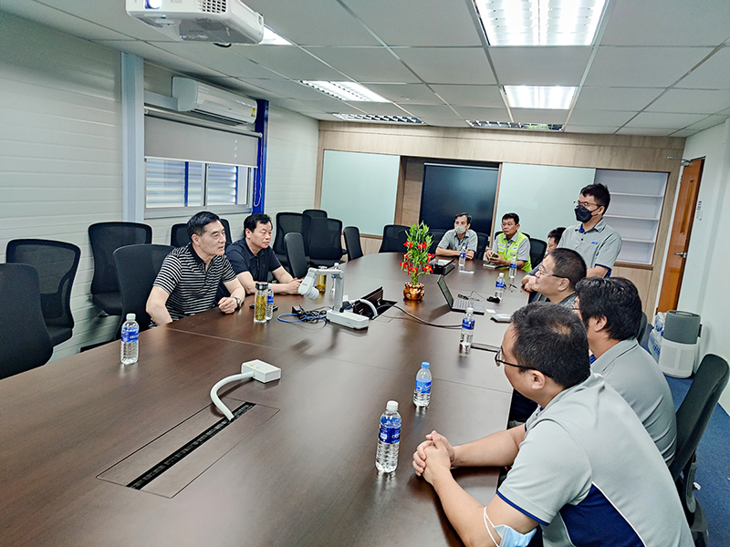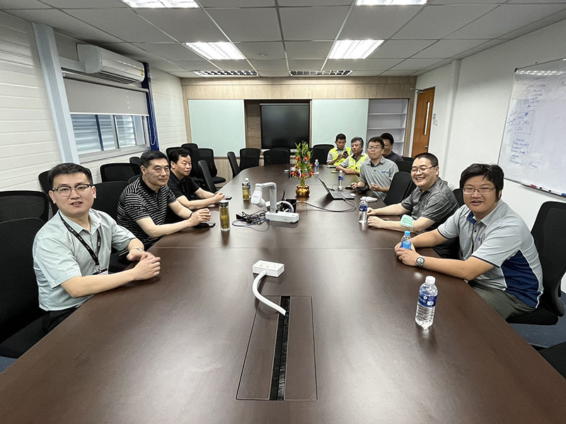 中國京冶建設(shè)工程(新加坡)有限公司執(zhí)行副總裁許亞男,執(zhí)行副總裁陳曉冬,鋼結(jié)構(gòu)高級(jí)運(yùn)營經(jīng)理翟東,鋼結(jié)構(gòu)運(yùn)營副經(jīng)理胡明陪同參觀座談。