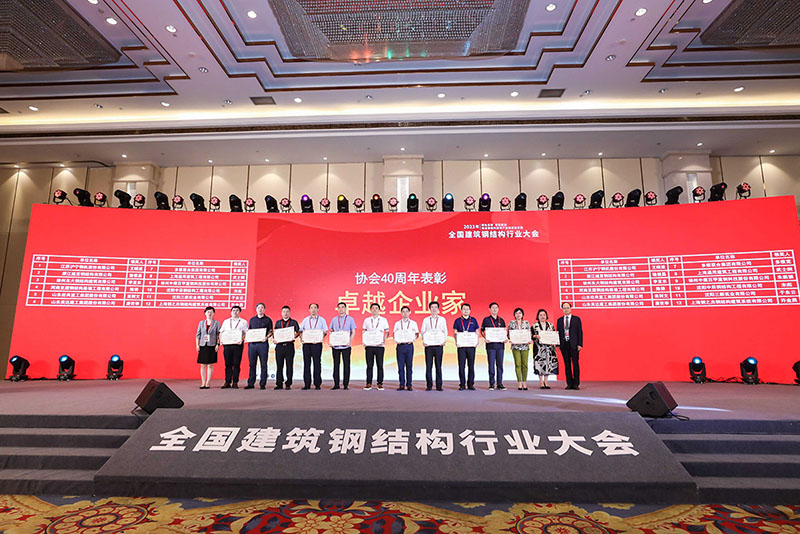 2023年6月2-4日2023年全國(guó)建筑鋼結(jié)構(gòu)行業(yè)大會(huì)在上海隆重召開,大會(huì)隆重表彰全國(guó)建筑鋼結(jié)構(gòu)行業(yè)先進(jìn)集體和先進(jìn)個(gè)人,中國(guó)建筑金屬結(jié)構(gòu)協(xié)會(huì)建筑鋼結(jié)構(gòu)分會(huì)副會(huì)長(zhǎng)、山東經(jīng)典重工集團(tuán)股份有限公司董事會(huì)主席苗樹文帶隊(duì)參會(huì),會(huì)上獲得多項(xiàng)榮譽(yù)。