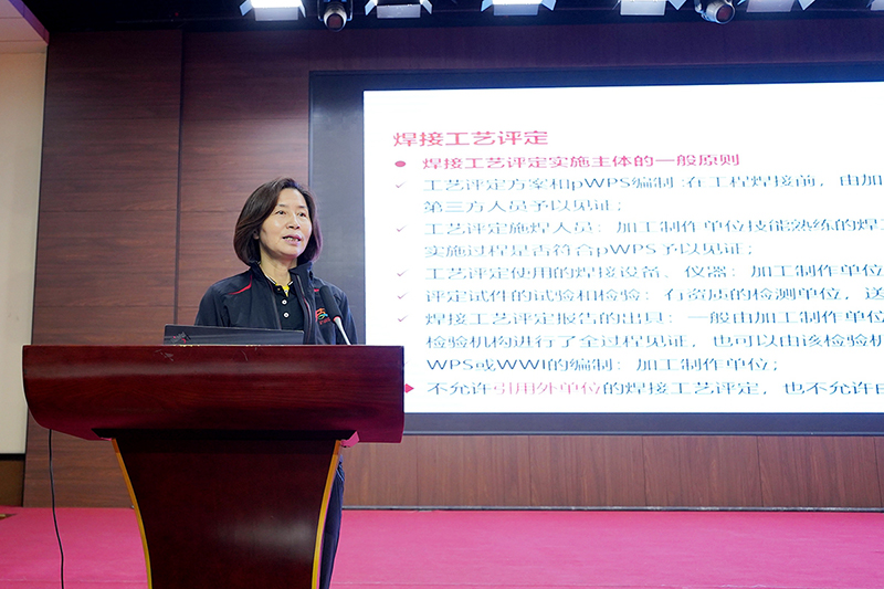 中國工程建設(shè)焊接協(xié)會(huì)培訓(xùn)部主任、教授級(jí)高工嚴(yán)洪麗作《鋼結(jié)構(gòu)厚板焊接質(zhì)量控制》專題講座