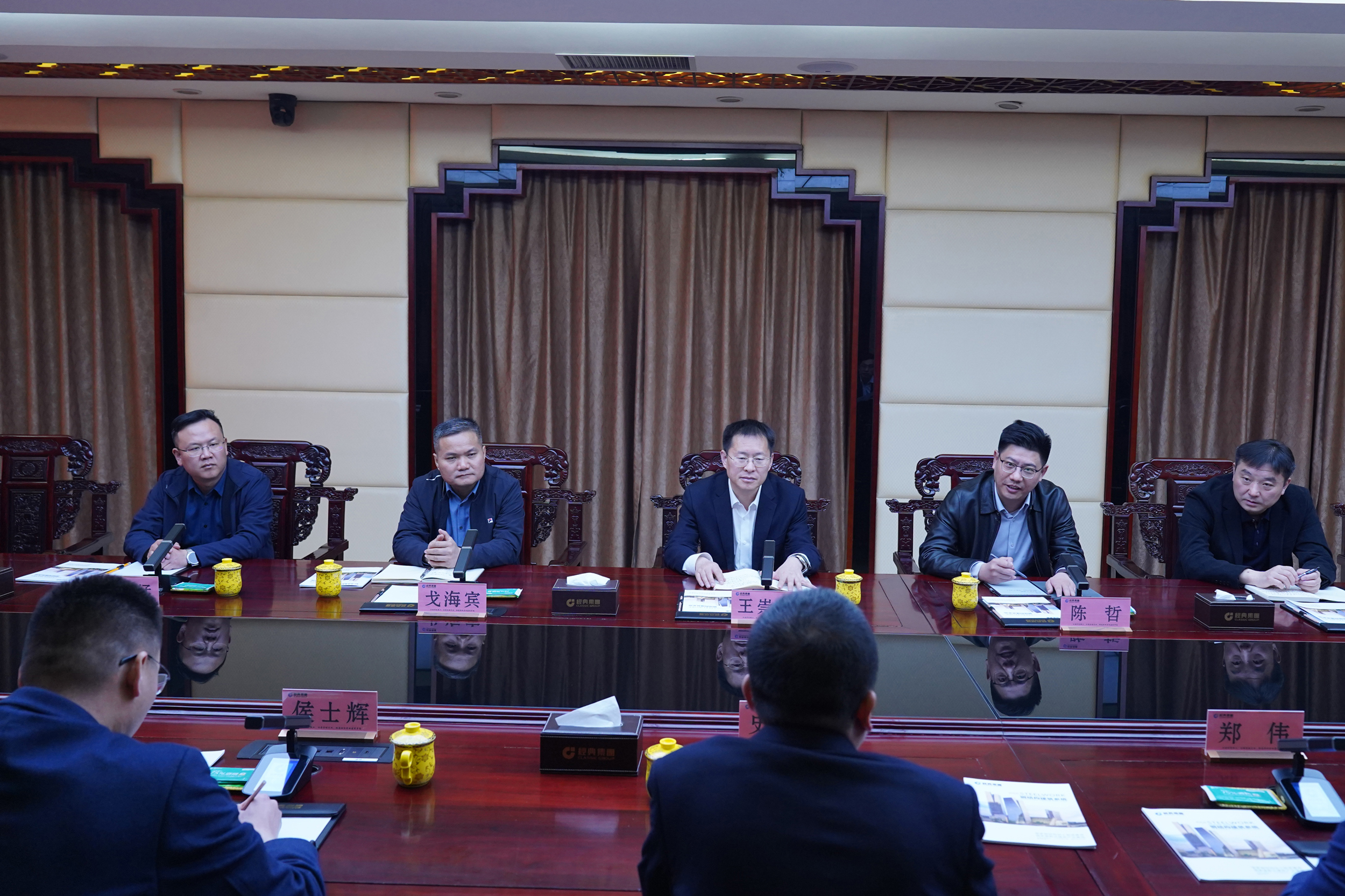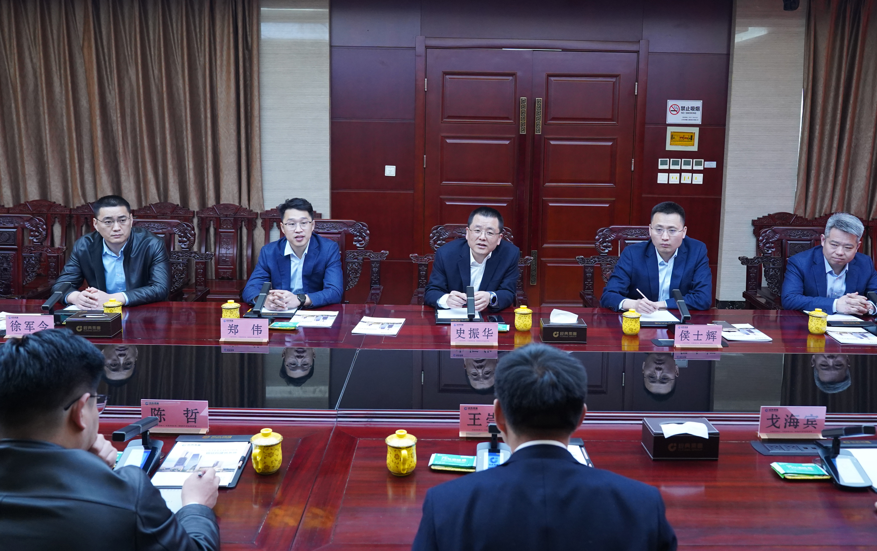 3月22日上午,濟(jì)寧能源發(fā)展集團(tuán)有限公司黨委副書記、總經(jīng)理王崇景,山東融匯物產(chǎn)集團(tuán)黨委書記、董事長(zhǎng)陳哲,金橋煤礦黨委書記、礦長(zhǎng)戈海賓,山東融匯物產(chǎn)集團(tuán)副總經(jīng)理、山東京杭智慧新鋼投資運(yùn)營(yíng)公司董事長(zhǎng)陳瑞亮等一行到經(jīng)典集團(tuán)考察洽談合作。